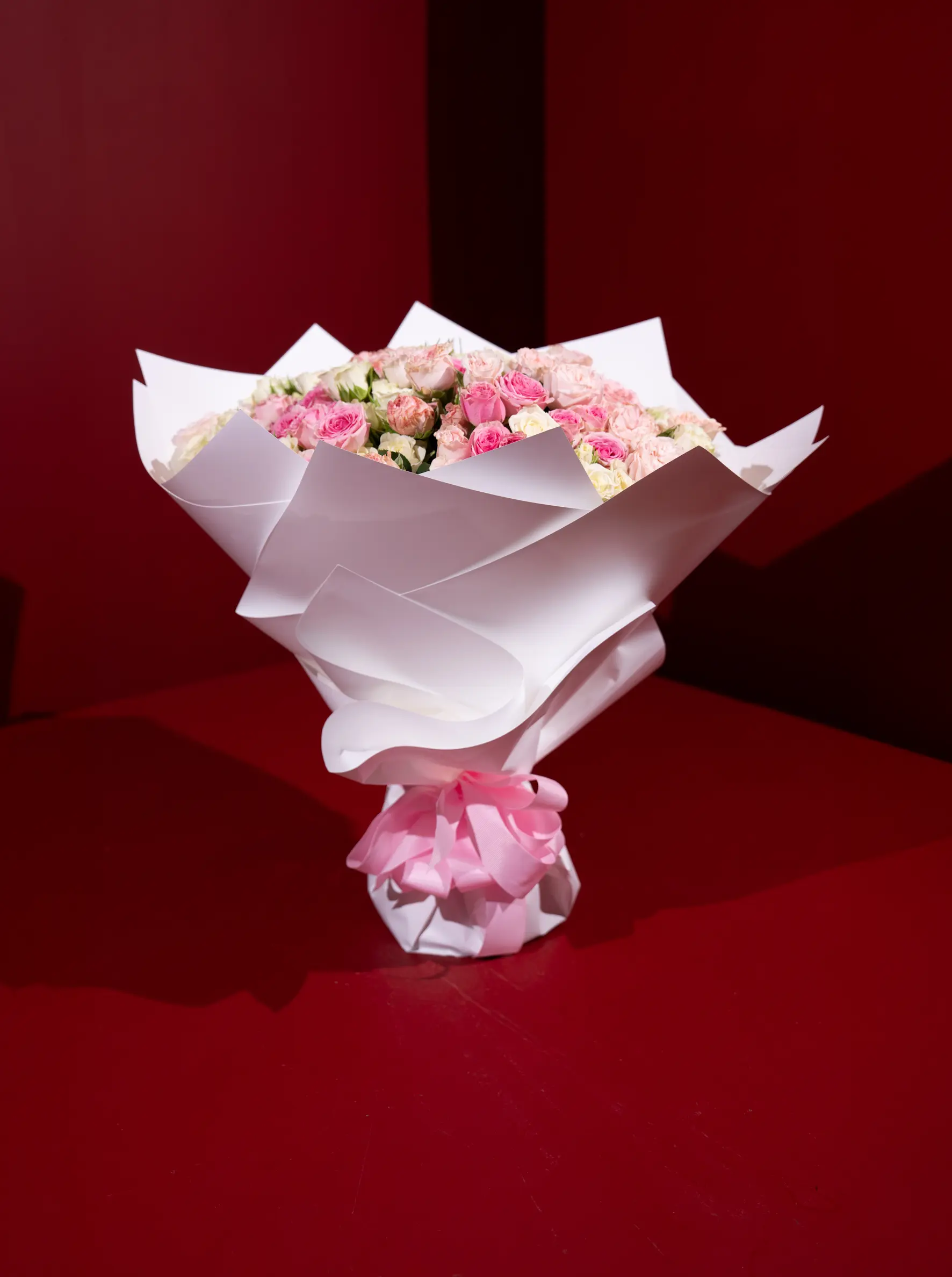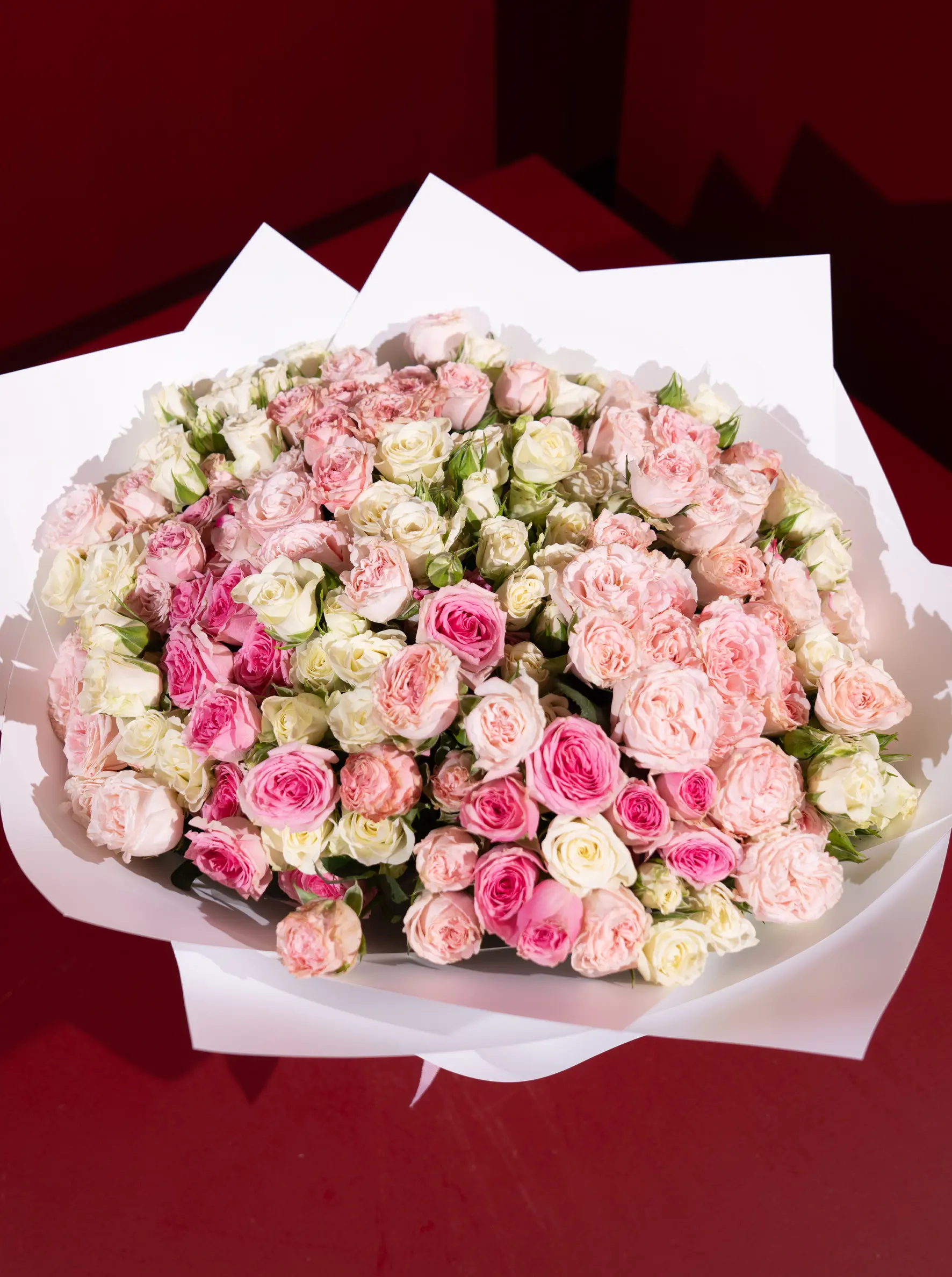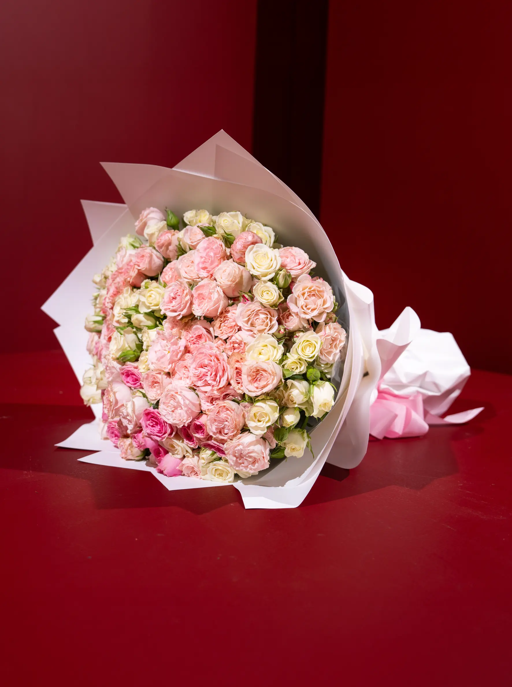 Make it all about you, with some floral self-care. Create a meditative moment at home with a high-impact combination of delicate pink and cream spray roses to show you how fabulous you are.
