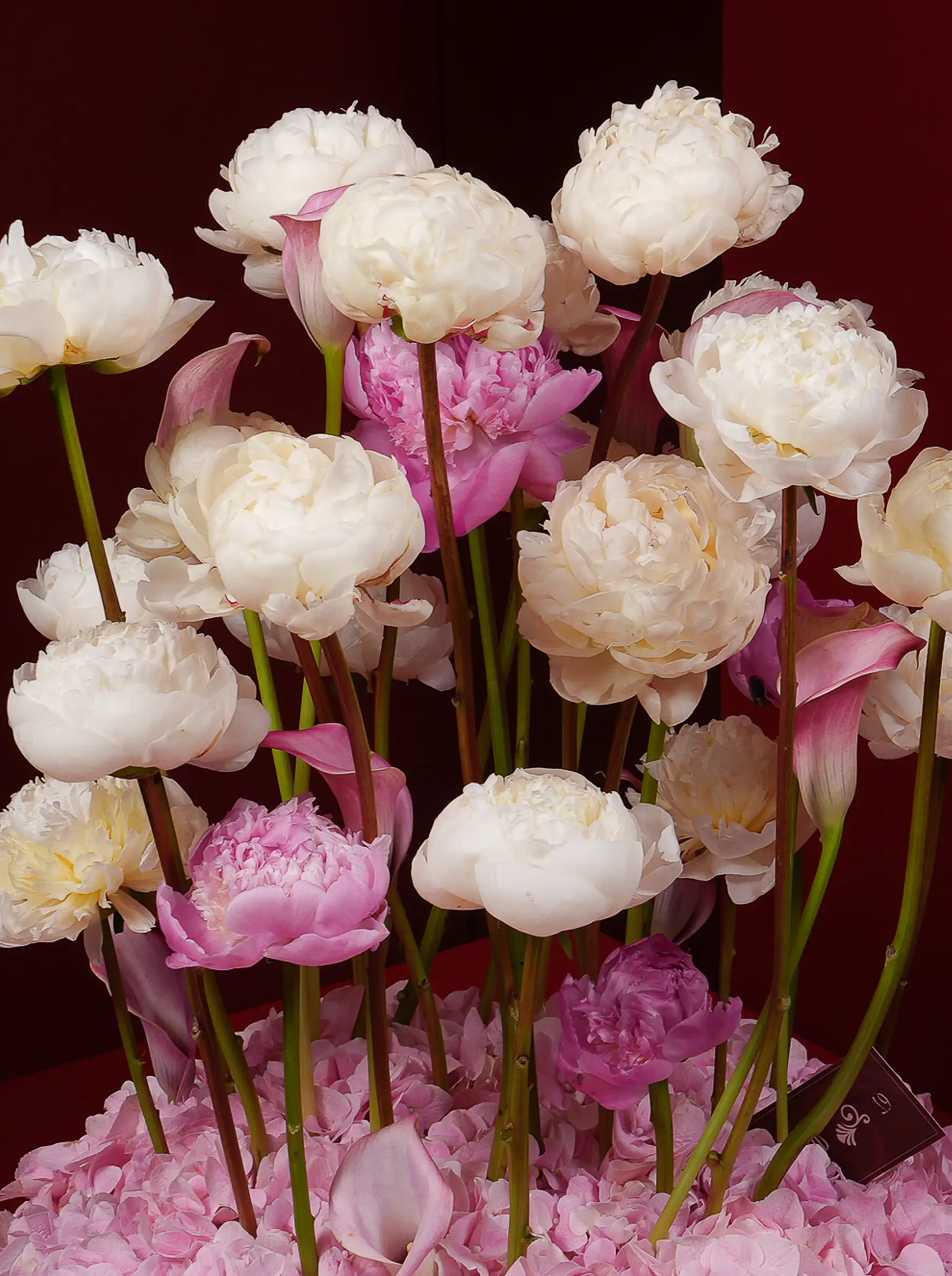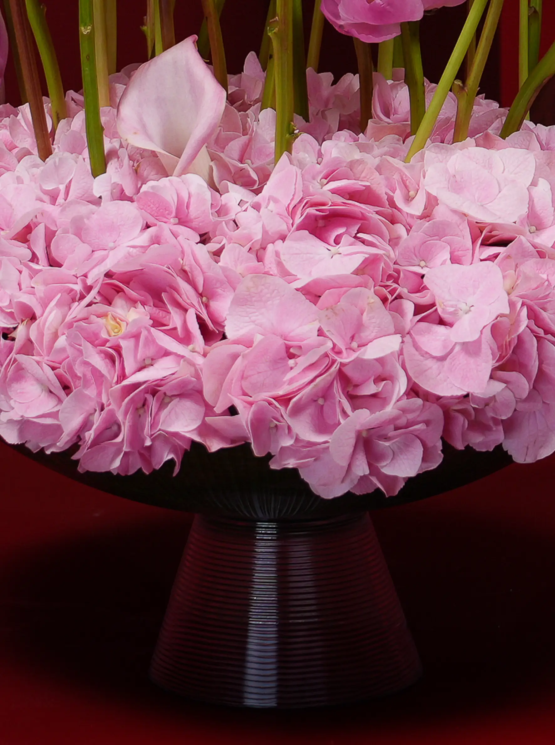 A dreamy garden suspended in time—delicate blooms rise gracefully from a lush, cotton-candy base of pink hydrangeas. This arrangement captures the lightness of clouds and the softness of petals, bringing ethereal beauty and gentle elegance to any space.